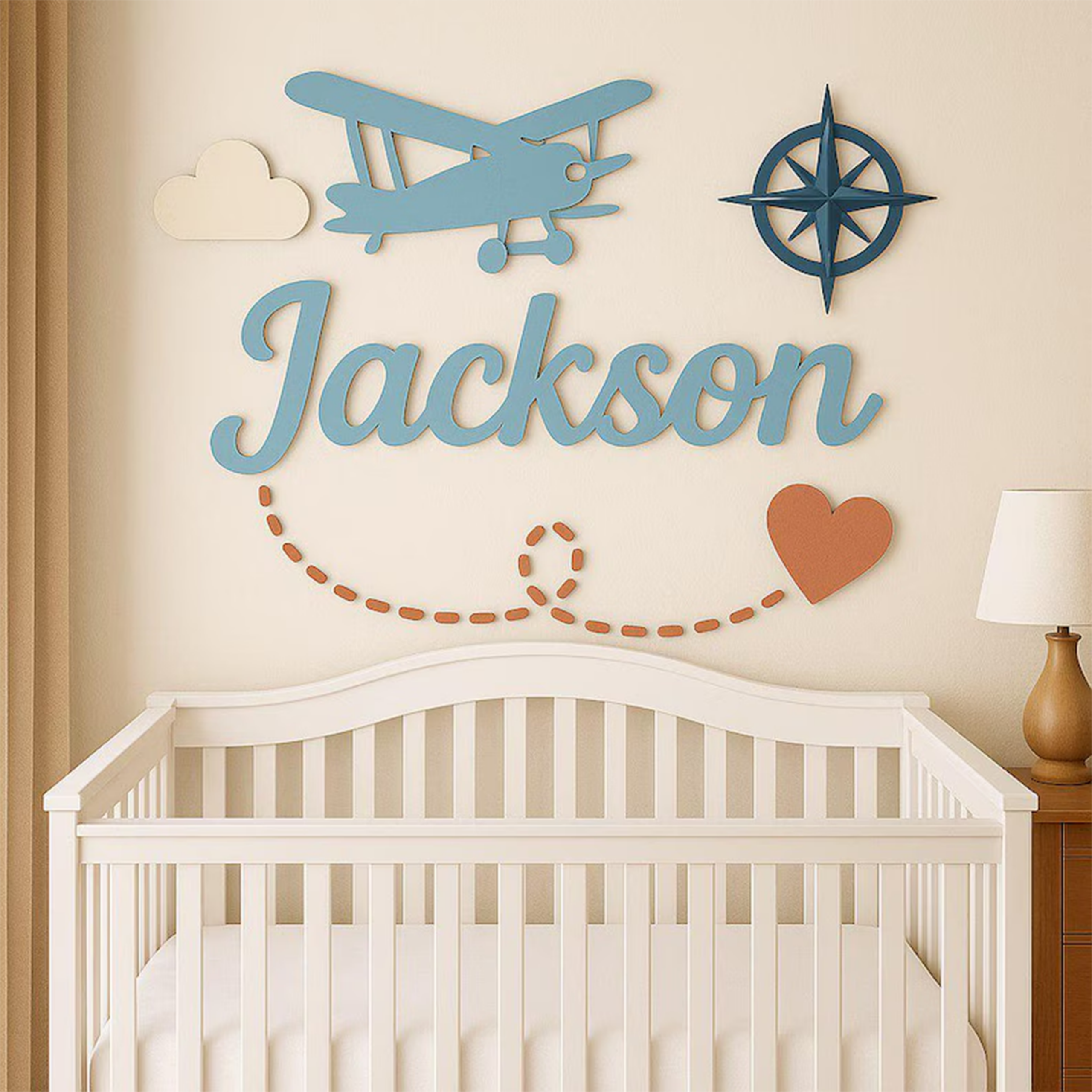 Airplane Nursery Name Sign, Personalized Wooden Baby Name Plaque, 3D Baby Boy Nursery Wall Decor.