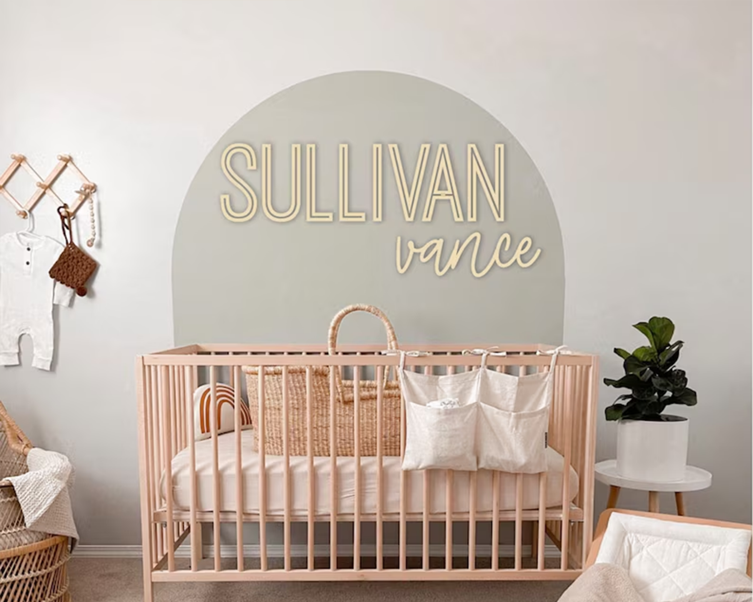 This custom name plaque fits beautifully in safari, jungle, woodland, and neutral nursery themes. Available in multiple size options to suit your space and comes ready to hang for easy installation.