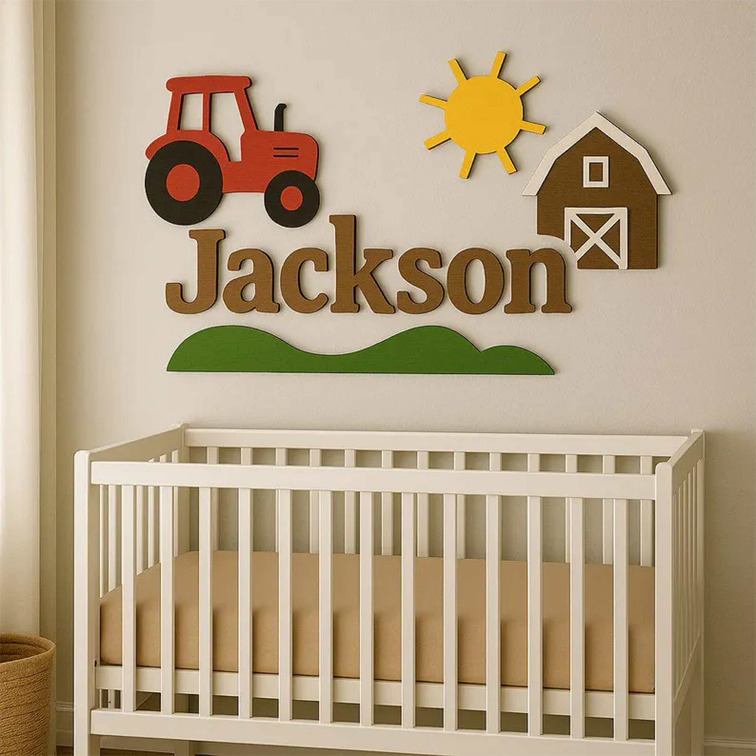 Custom Tractor Baby Name Sign, Personalized Wooden Nursery Wall Plaque, Farmhouse Country Nursery Decor, Unique Baby Shower Gift for Boys.