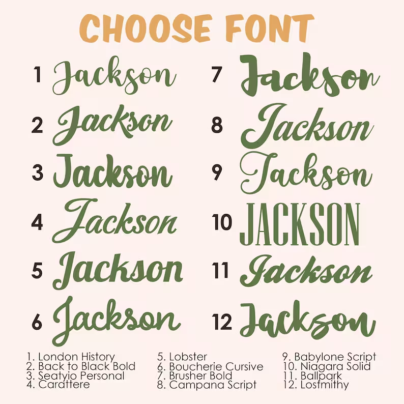 -Font number (choose from the font chart in the listing photos – from 1 to 12)