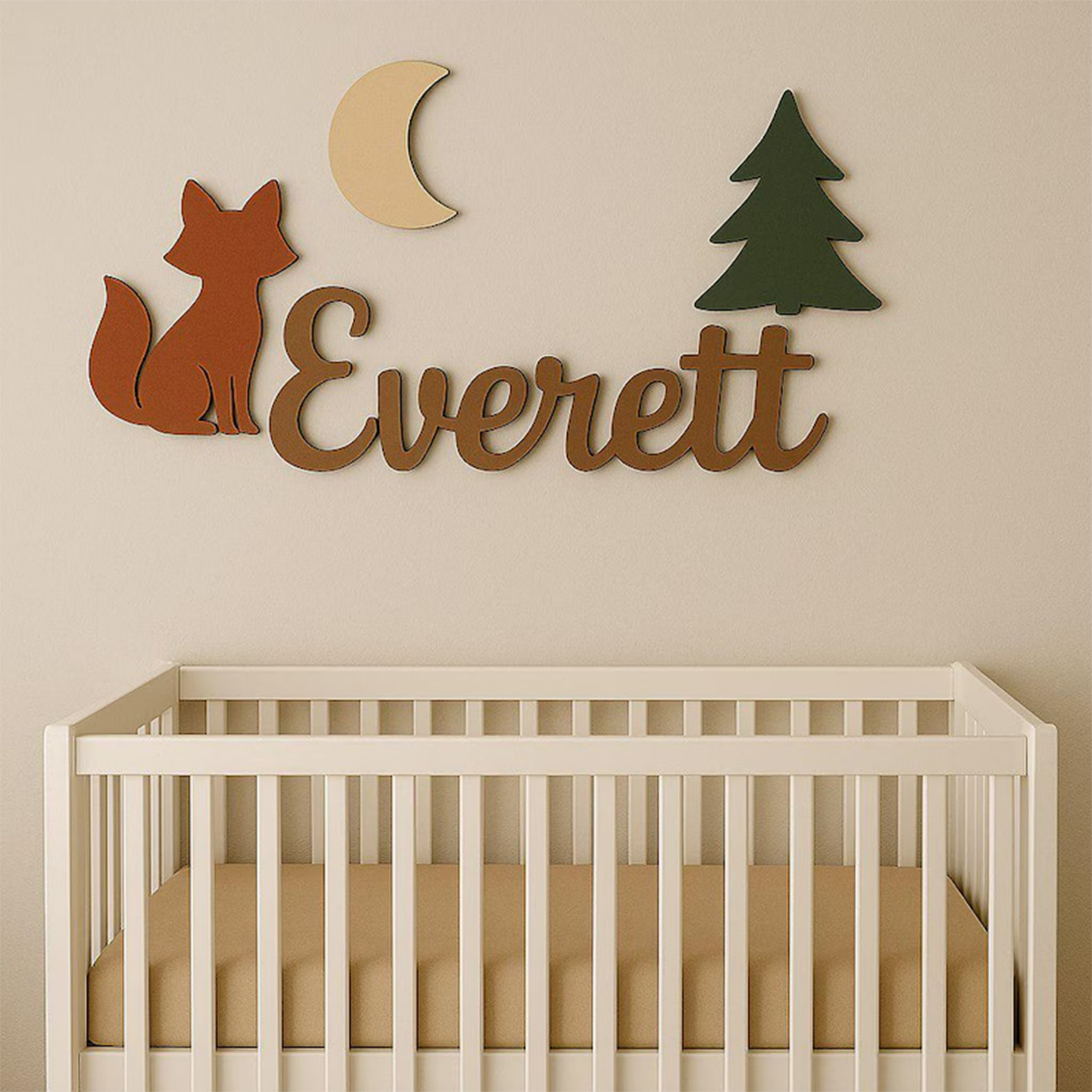 Fox Woodland Nursery Name Sign, Personalized Baby Name Plaque, 3D Wooden Wall Art for Nursery Decor.