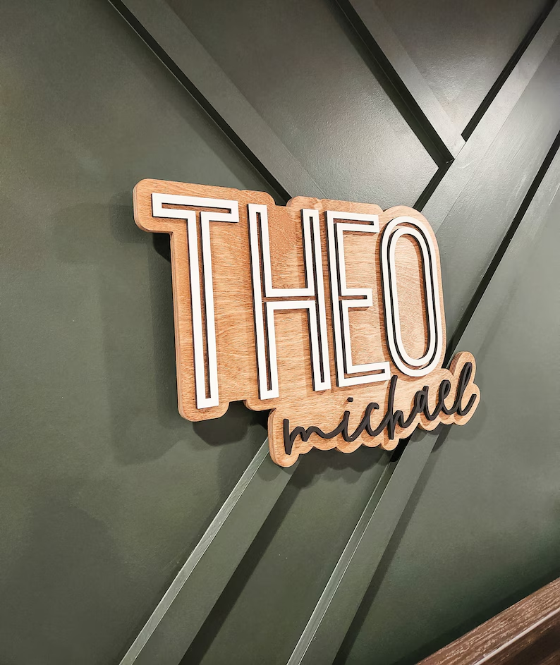 Each wooden nursery name sign is personalized with your child’s name, making it a unique and meaningful piece of decor. The layered 3D design creates depth while remaining lightweight and safe for nursery walls. Precision cutting and smooth edges ensure a clean, premium look.