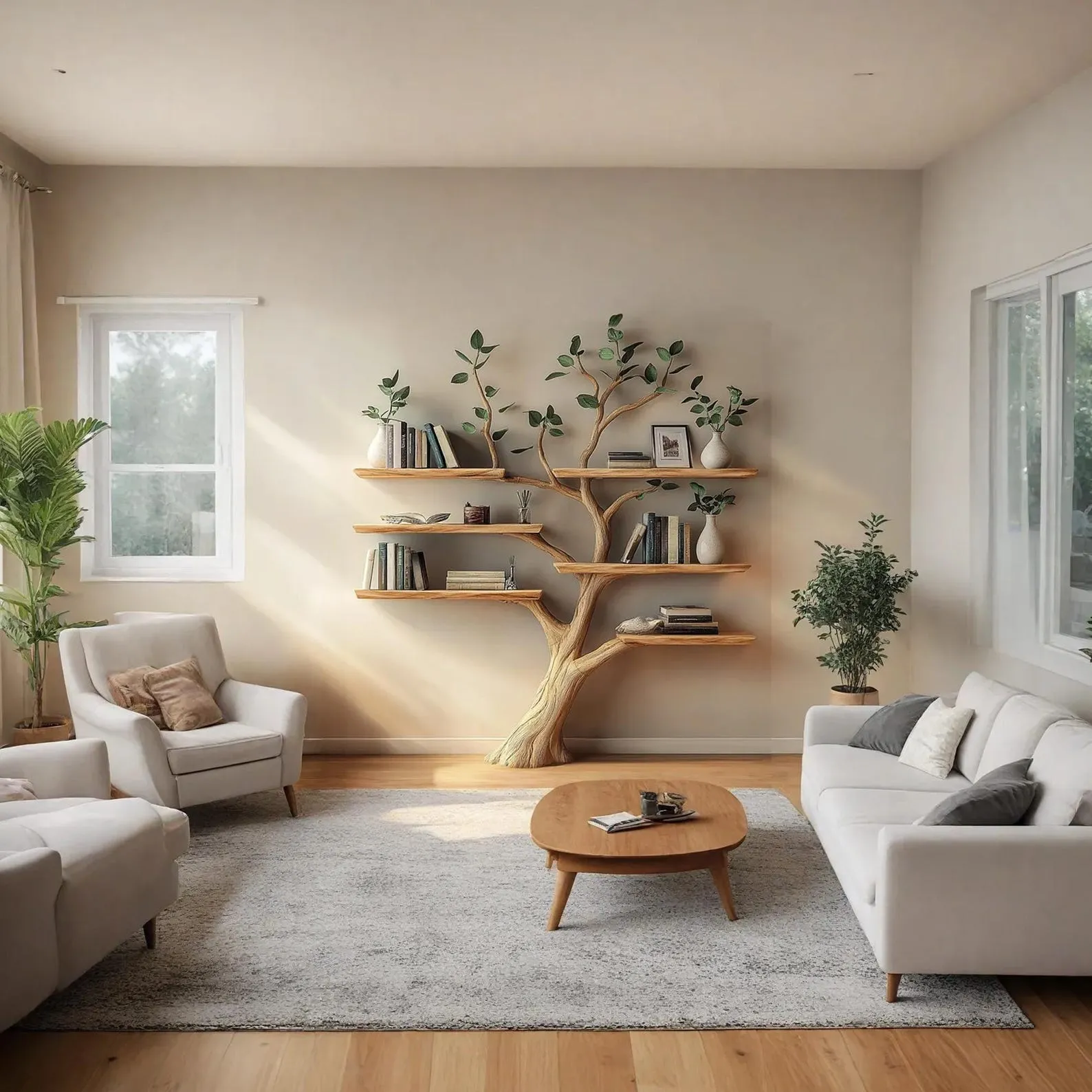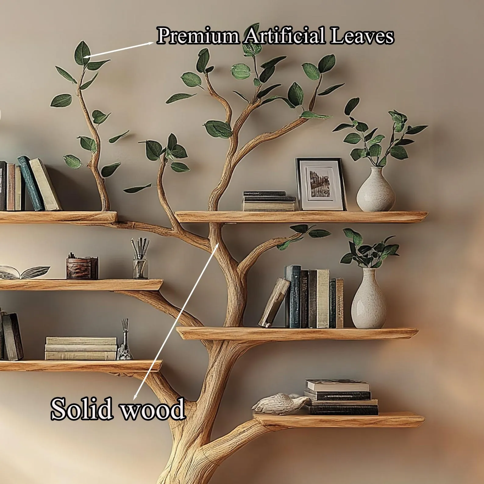 Natural Solid Wood Tree Corner Wall Bookshelf