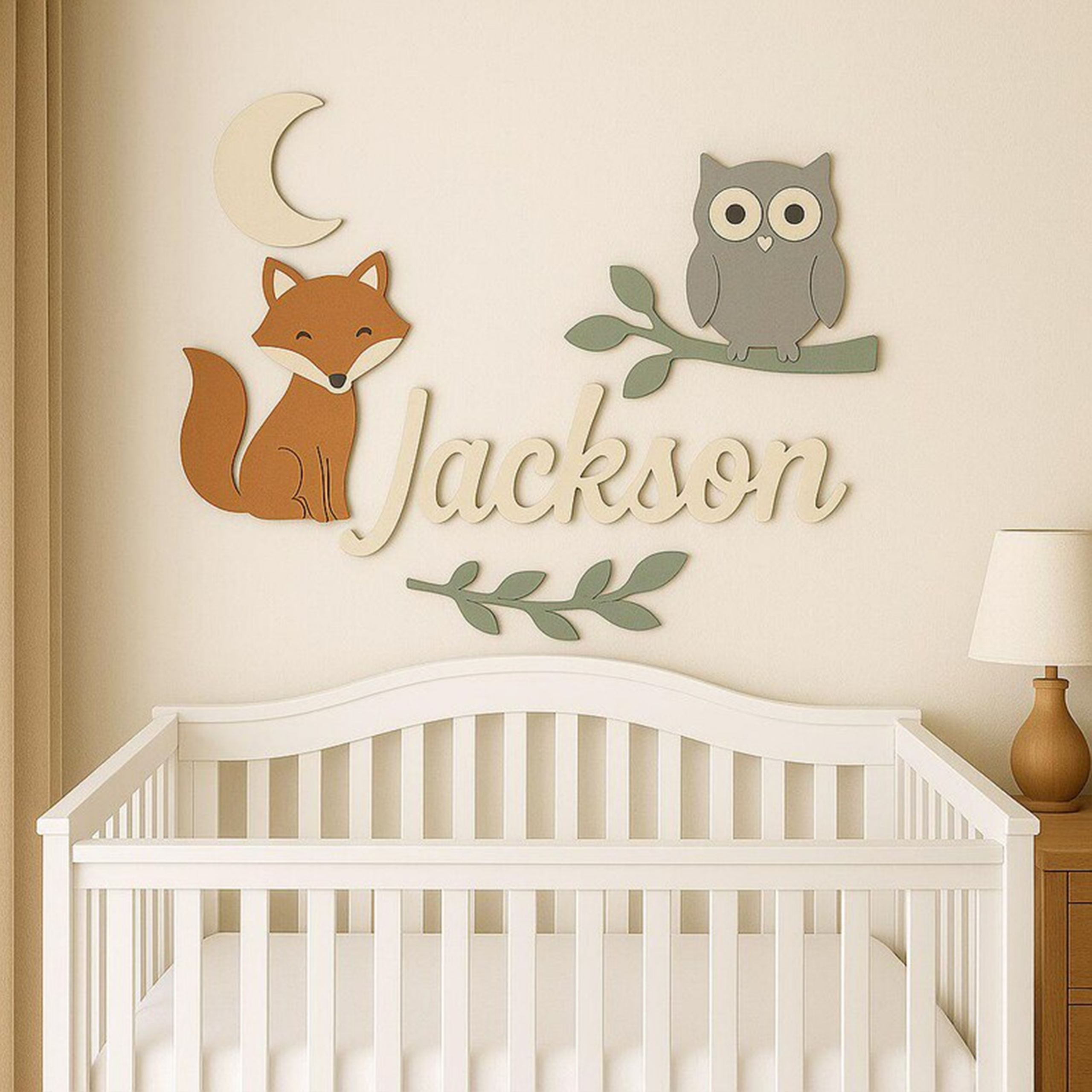 Owl and Fox Nursery Sign Personalized, 3D Wooden Woodland Baby Room Wall Art, Cute Forest Animal Decor Above Crib, Newborn Gift.