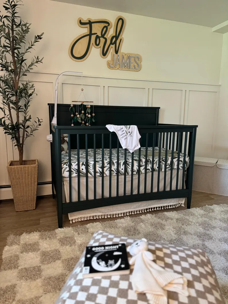 This custom name plaque fits beautifully in safari, jungle, woodland, and neutral nursery themes. Available in multiple size options to suit your space and comes ready to hang for easy installation.