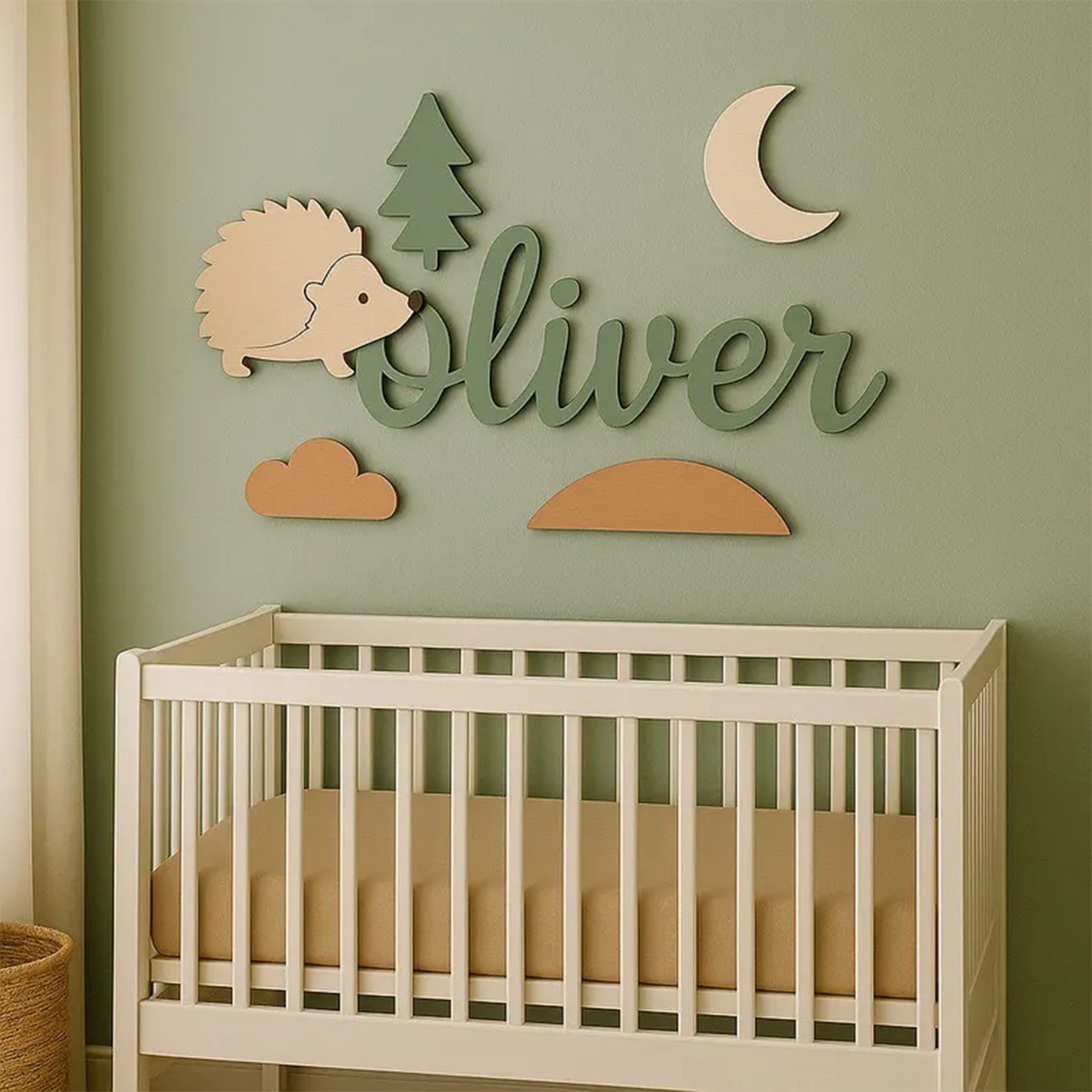 Personalized Hedgehog Wooden Name Sign, Custom Baby Name Plaque, Woodland Nursery Wall Decor for Baby Room.