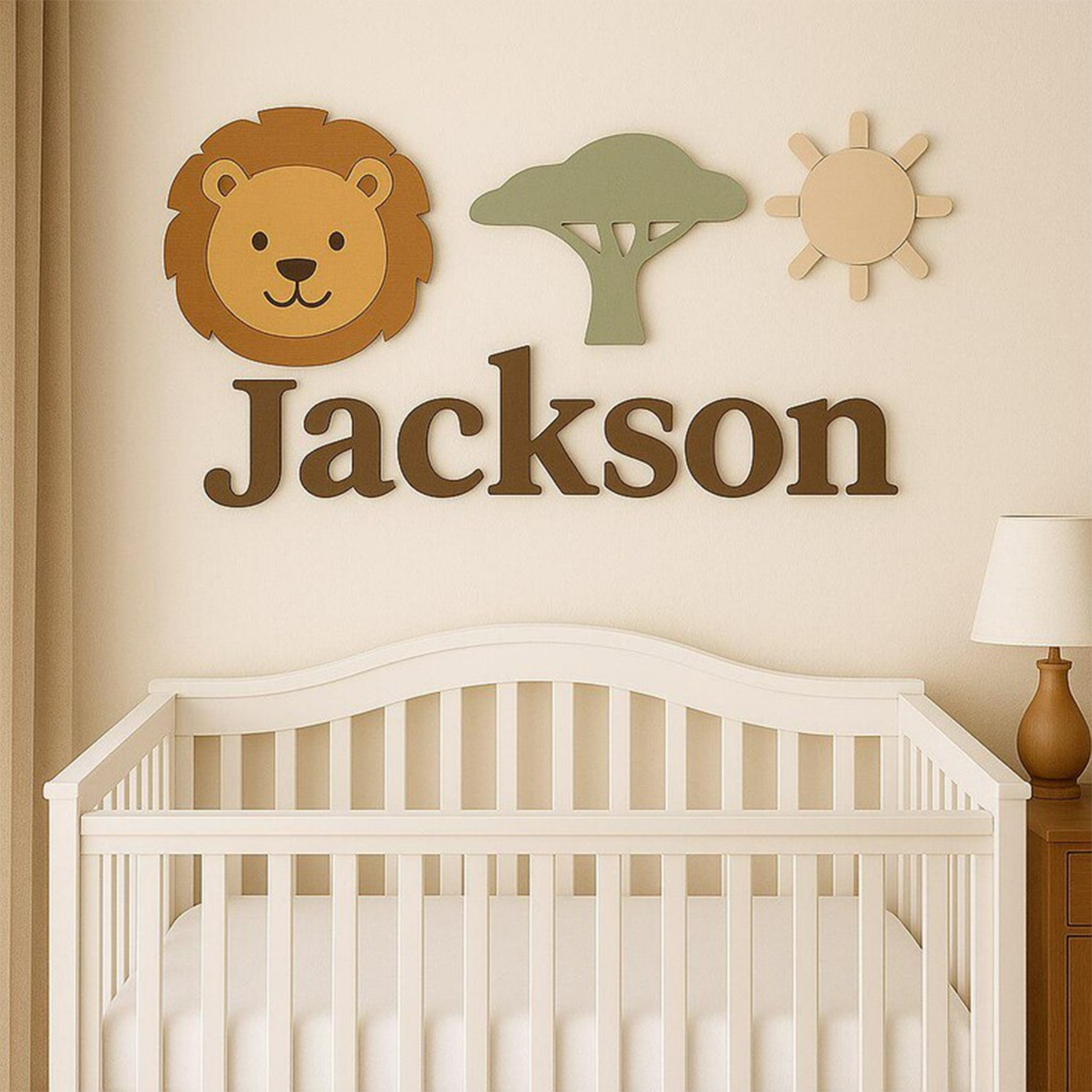 Create a warm and playful atmosphere in your baby’s room with this personalized safari nursery name sign — a charming wooden wall decor designed especially for above the crib.