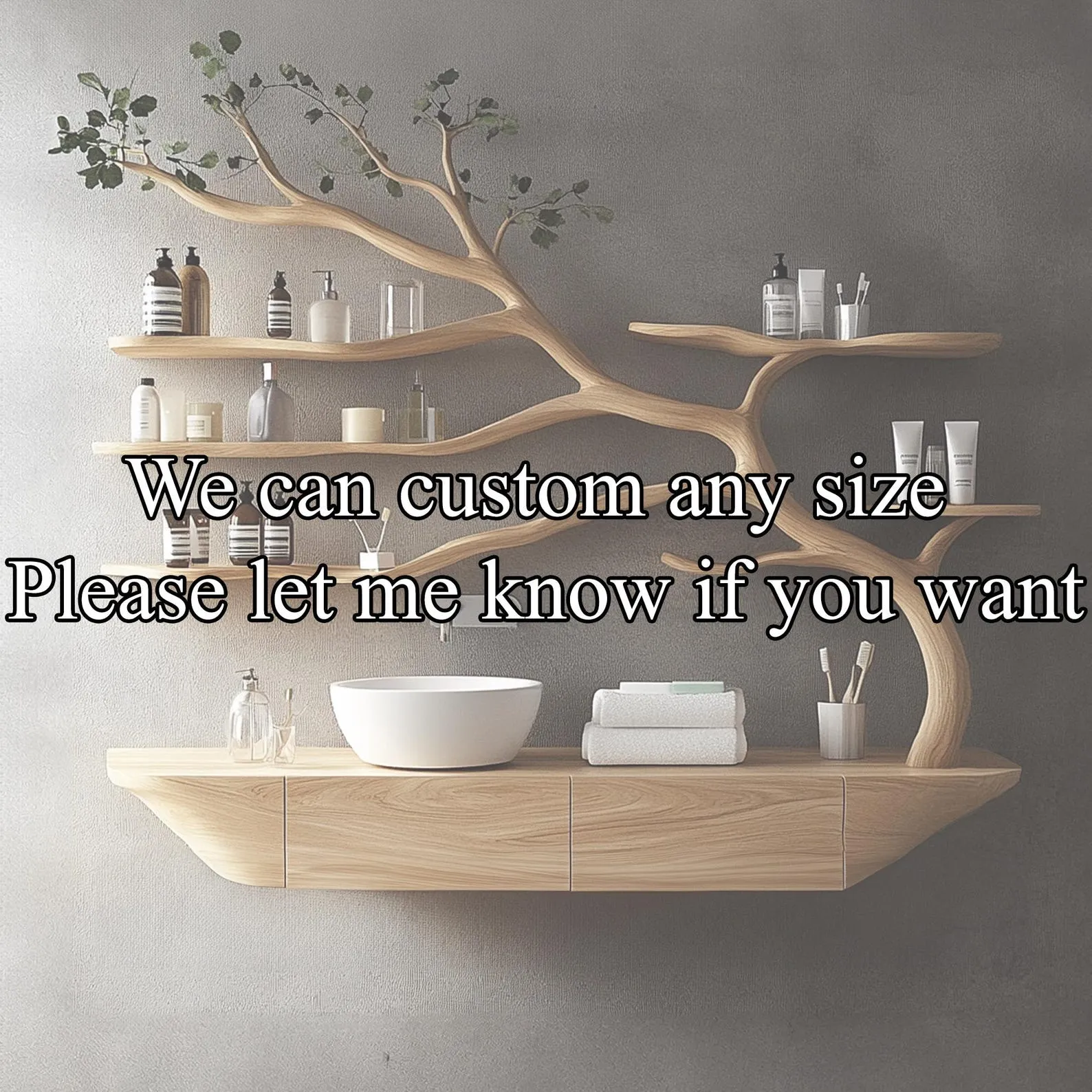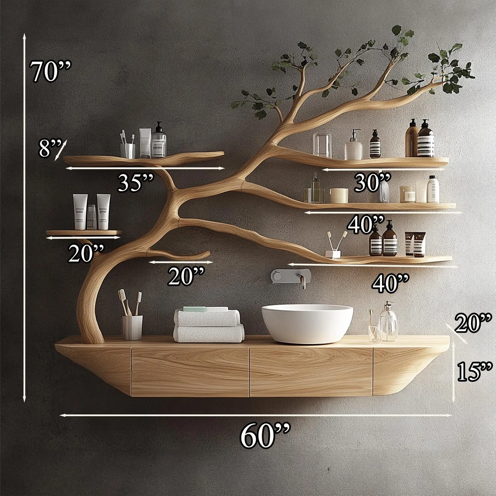 The design saves floor space while still providing a visually interesting base for the sink. Branch style details and textured grain give the vanity an organic look that pairs well with stone, tile and simple wall colors. Hand finished edges feel smooth without hiding the natural imperfections of the timber.