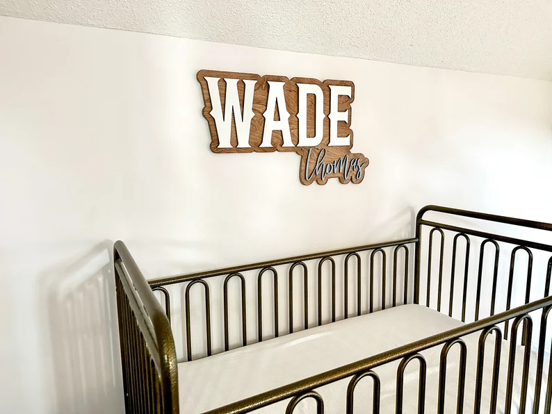 Western Theme Nursery Name Sign Personalized, Custom 3D Wooden Name Sign, Baby Boy Room Decor