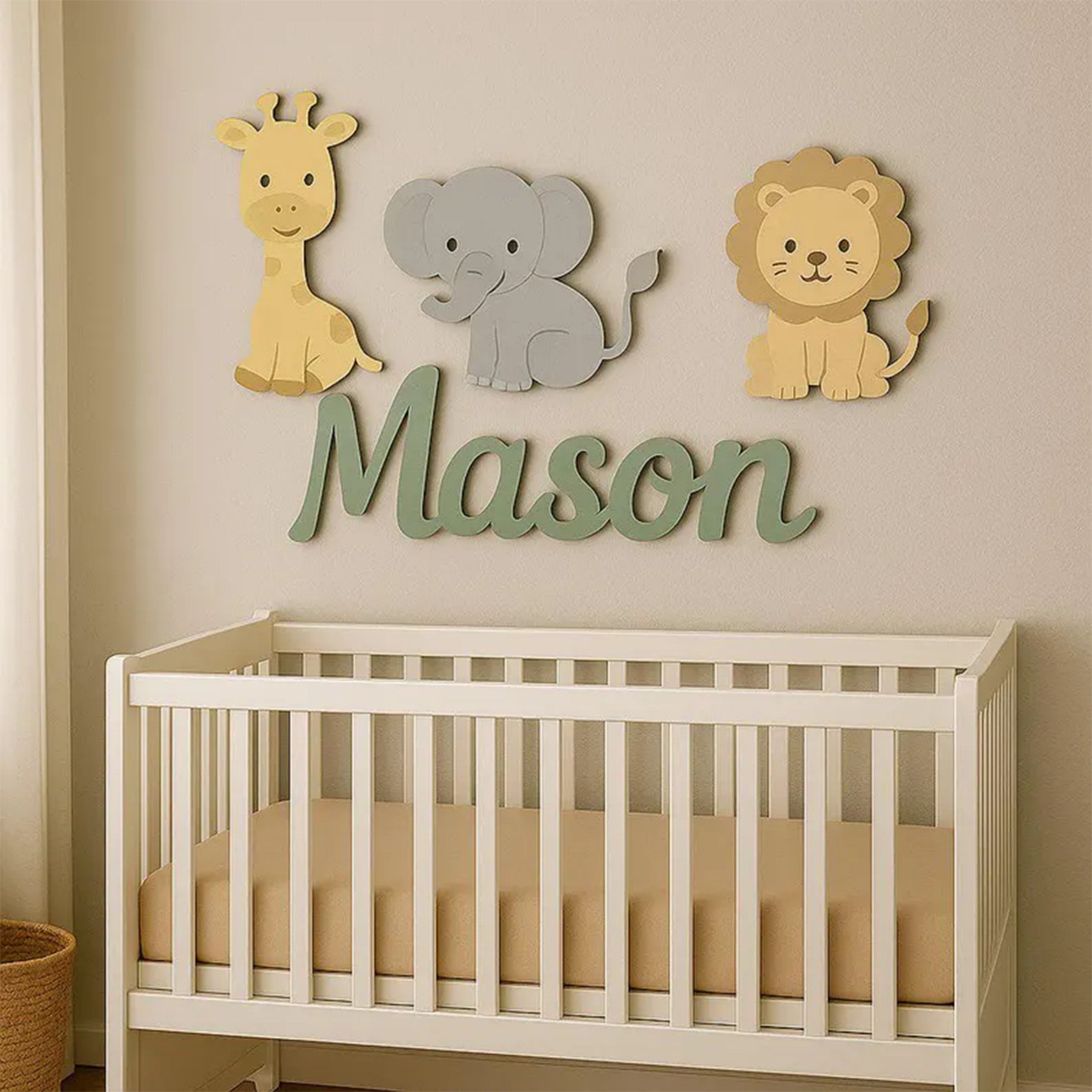 Create a warm and playful atmosphere in your baby’s room with this personalized safari nursery name sign — a charming wooden wall decor designed especially for above the crib.